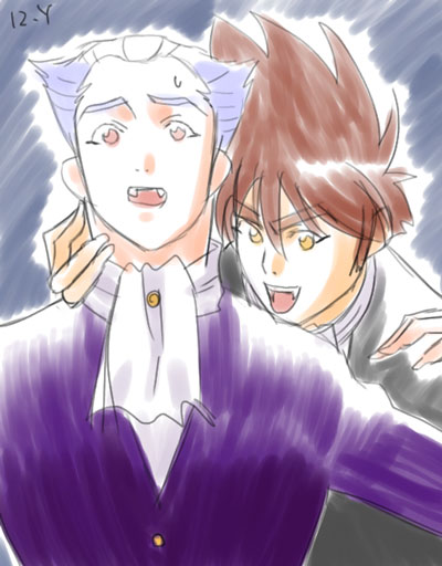 2012-09-24 吸血鬼のお話。 マクロス7イラスト粗 ごとうさんのお話、ハロウィン付近に読みたいなぁと、とっておいたのを 今日読ませて頂きました。 いい。実にエロティック。 バサラの生い立ちも気になります。 永遠に二人で暮らすっていうのがいいなぁ。 乙女心をクスグラレルなぁ。 上の絵は、全然シリアスさが無くてがっかりなんですが 二人吸血鬼ということで描いてみました。 ハロウィンの絵、描こうと思ってたけどなんかこれでスッキリしてしまった。 もうちょっと腐要素が濃いめのを描きたいかもしれないけど。 明日考えてみよう。