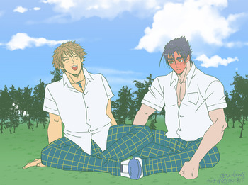 2017-05-18 らくがき。 鉄拳 三島の制服よくわからないけど、ぐぐったらキーチェーン? が出て来て面白かったのでそのままのズボンの柄で描きました。 いろいろてきとーくおりてぃですがらくがきなのでいいのです。 久しぶりに真仁描いたなぁ。好きだなぁ。可愛いなぁ。